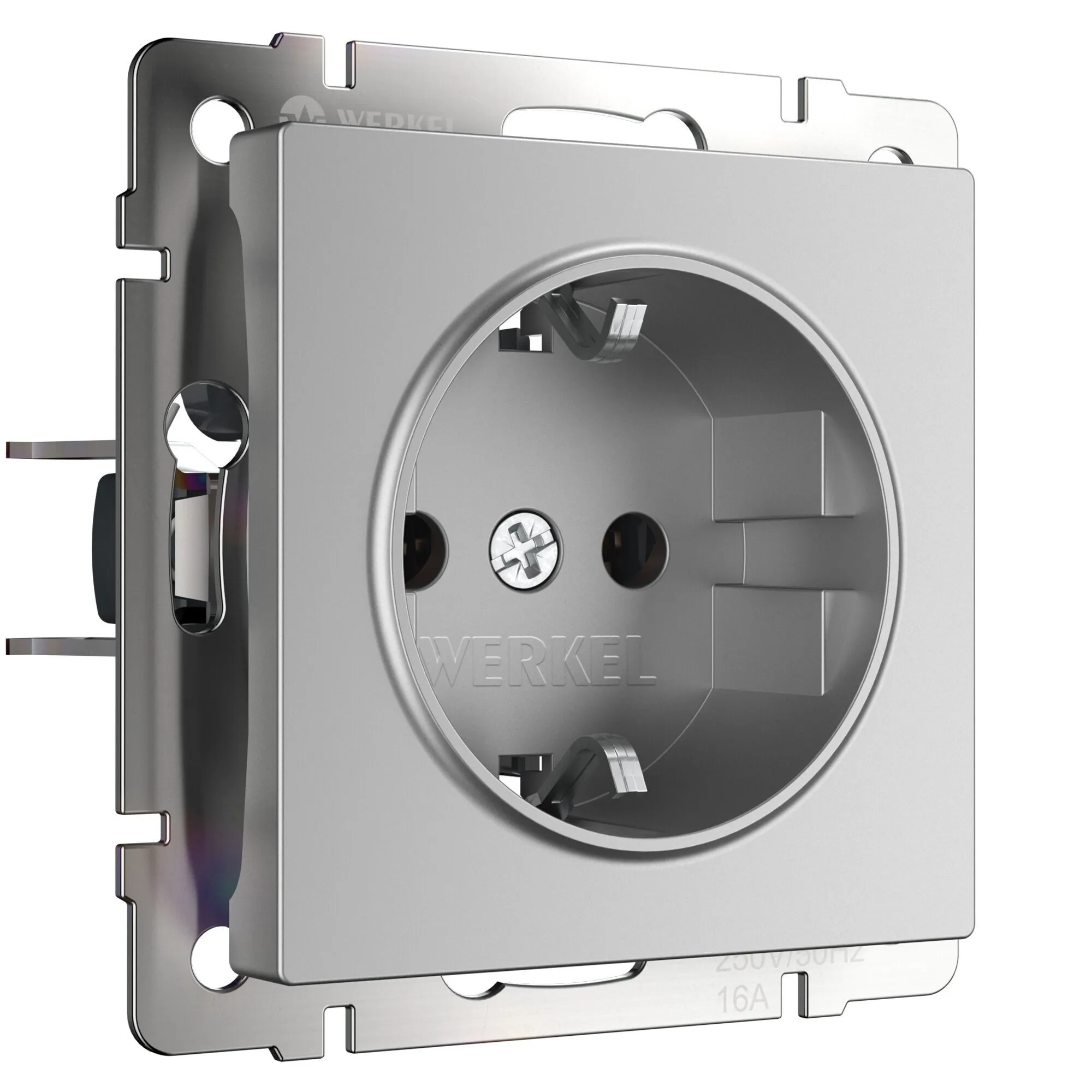 Розетка с заземлением 16 А серебряная W1171006 — стиль, безопасность и долговечность от Werkel